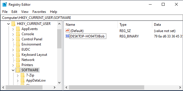 New-ItemProperty -Path "HKCU:\SOFTWARE\" -Name $HostnameAndUsername -PropertyType Binary -Value $Binary;